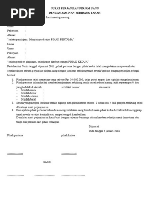 Surat Perjanjian Pinjam Uang Gadai Sawah Pdf